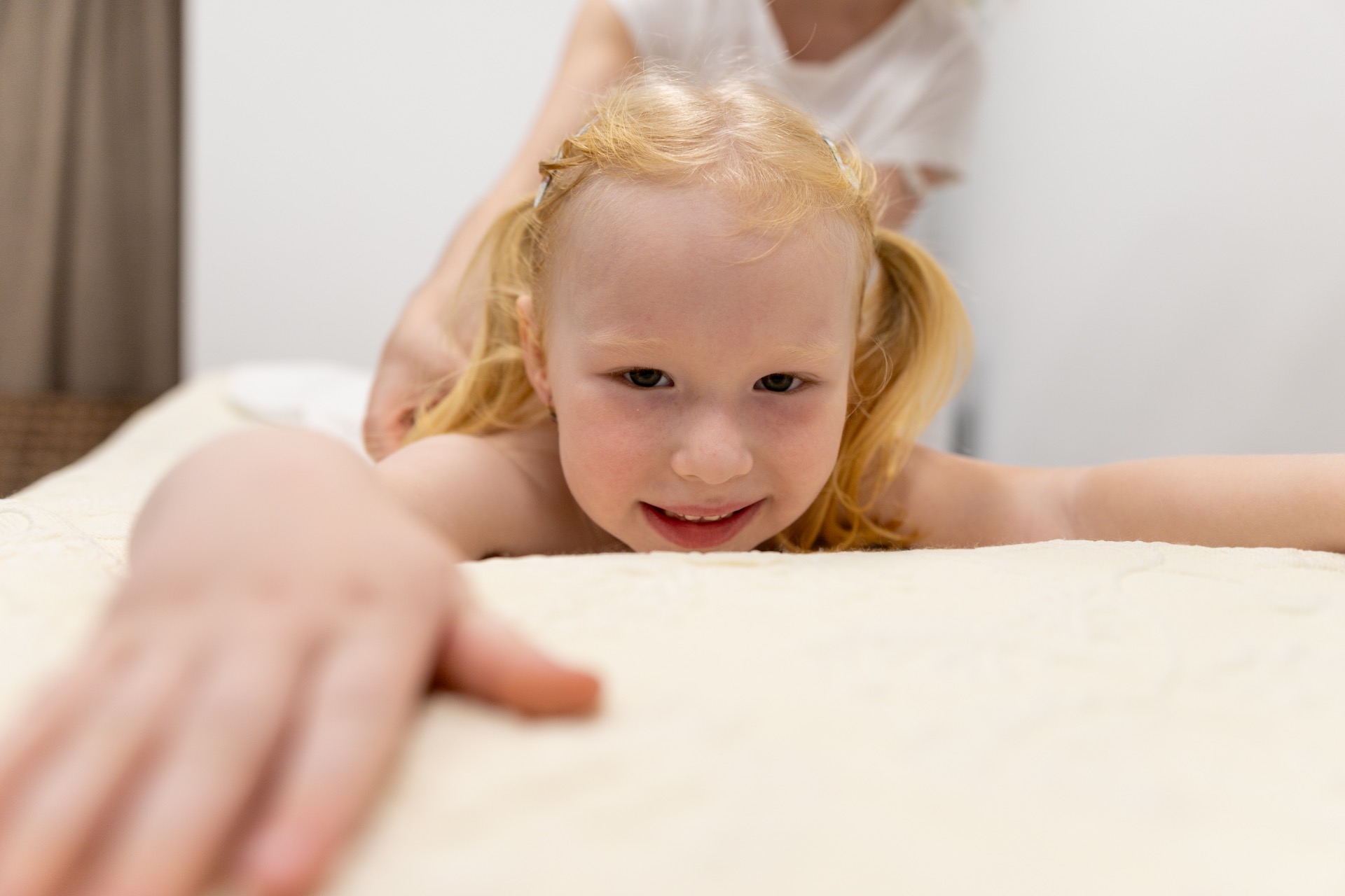 Jemná, systematická masáž bábätka zameraná na upokojenie, lepší spánok, zlepšenie trávenia a posilnenie väzby medzi dieťaťom a rodičom. Procedúra prebieha v bezpečnom tempě a rešpektuje signály dieťaťa.